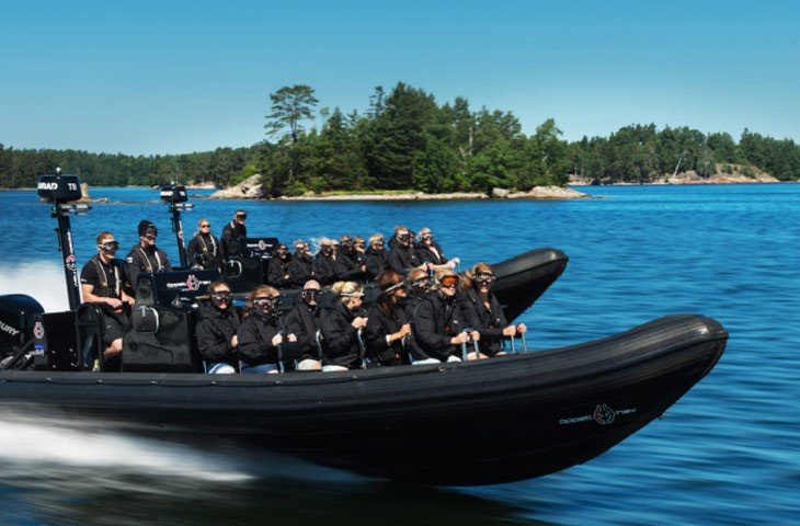 Max 12 passagerare får plats per RIB-båt och ni lånar flytoveraller eller skalställ samt flytväst och goggles. Alla deltagare får även en mössa att behålla efter turen.