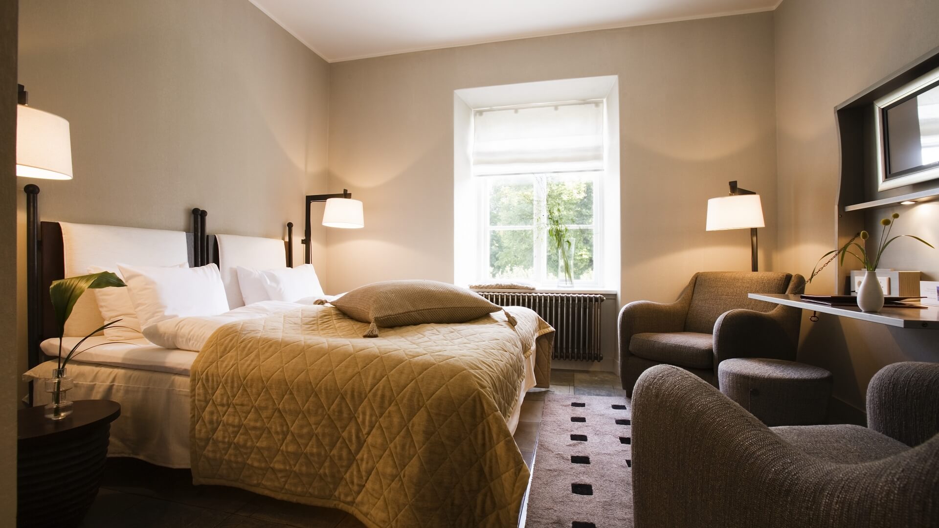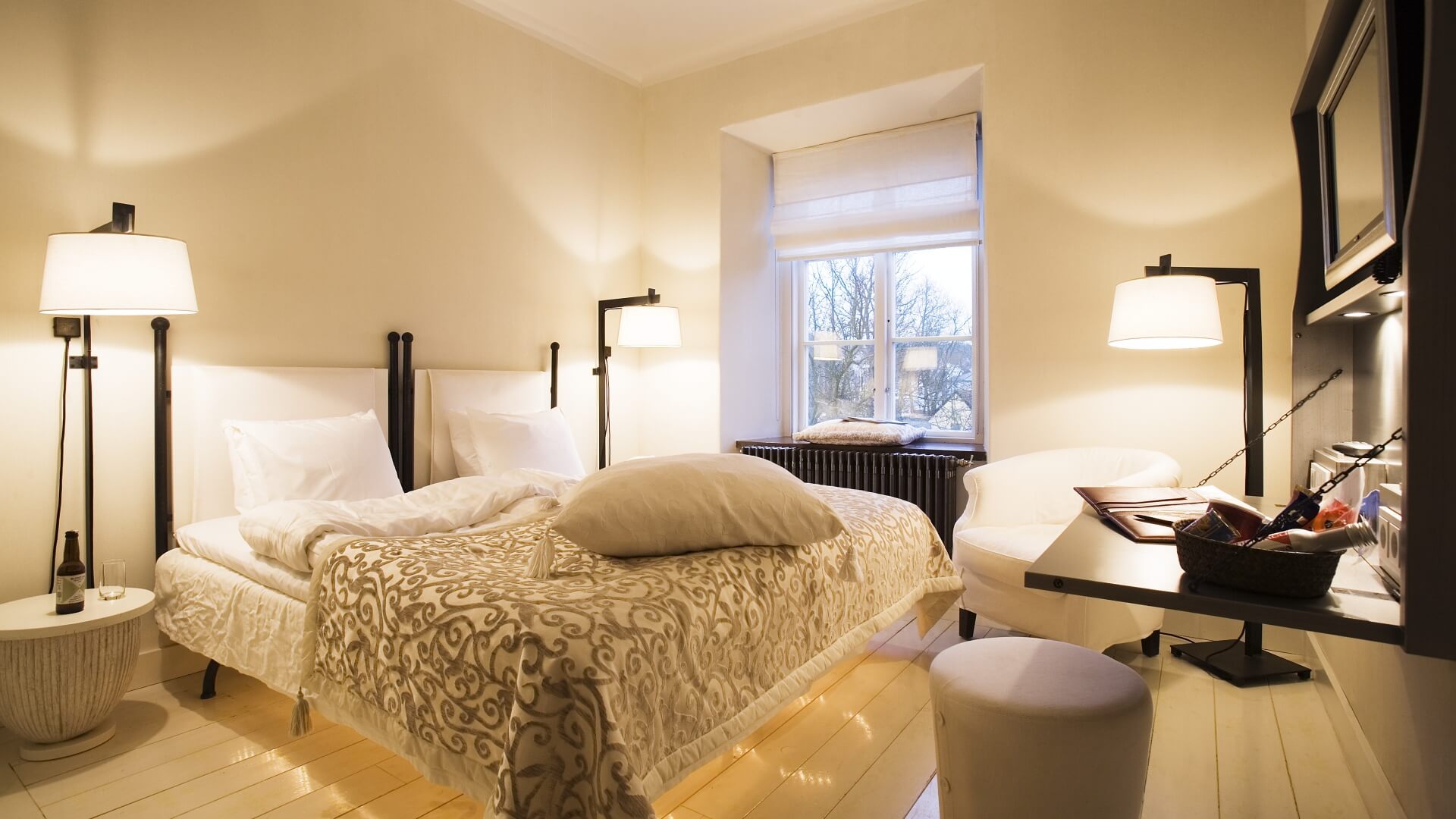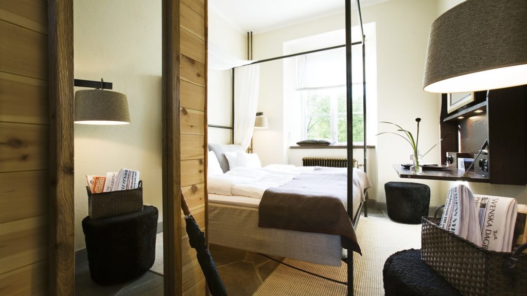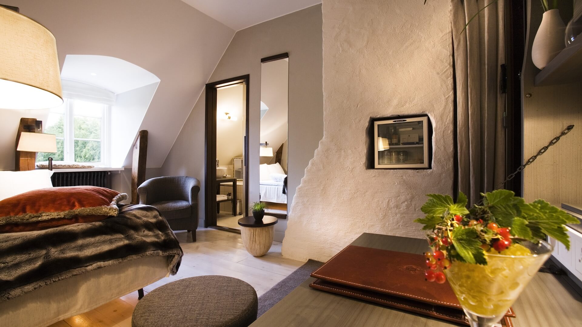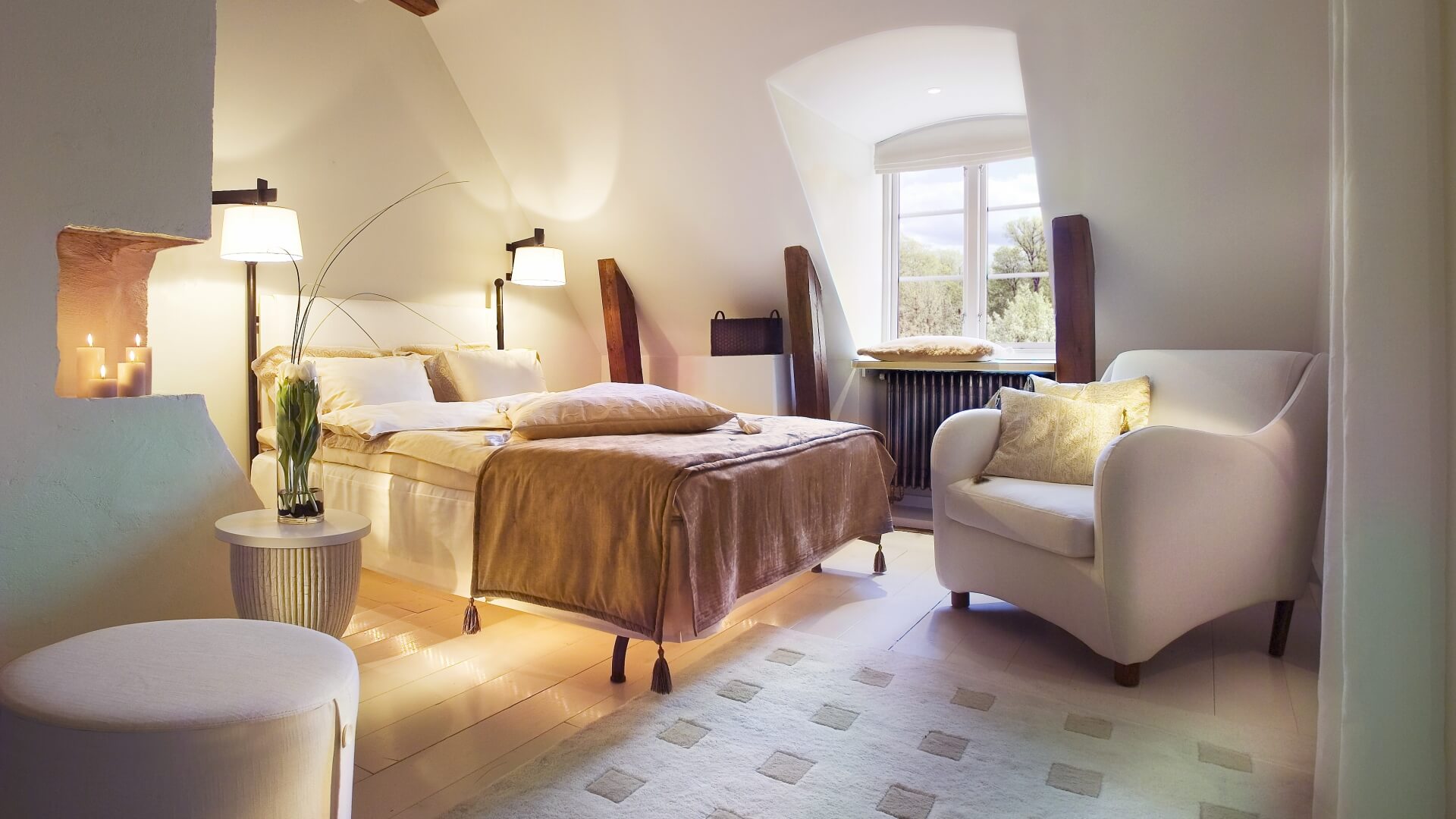 Alla våra 54 hotellrum är individuellt inredda. På Stockholms närmaste slott kan du välja och vraka mellan romantiska himmelssängar, badkar i alla dess former, sviter du aldrig kunnat drömma om och färgsprakande inredning. Vi har hög kvalité i alla våra materialval för att du ska få en upplevelse av hög klass.
