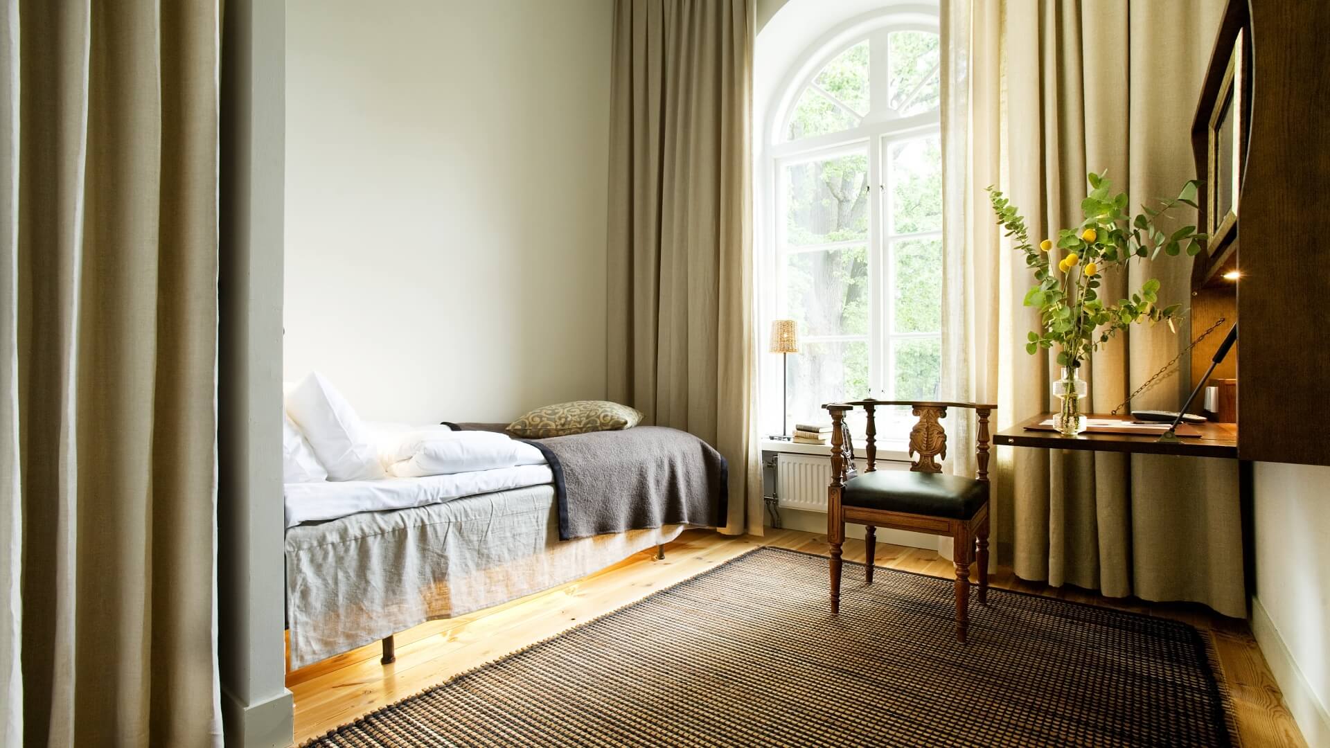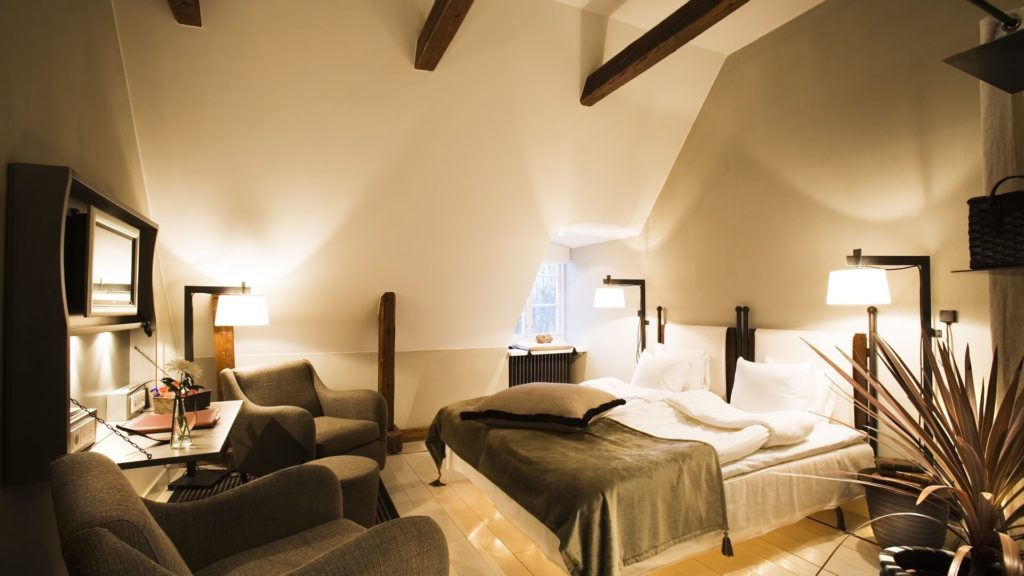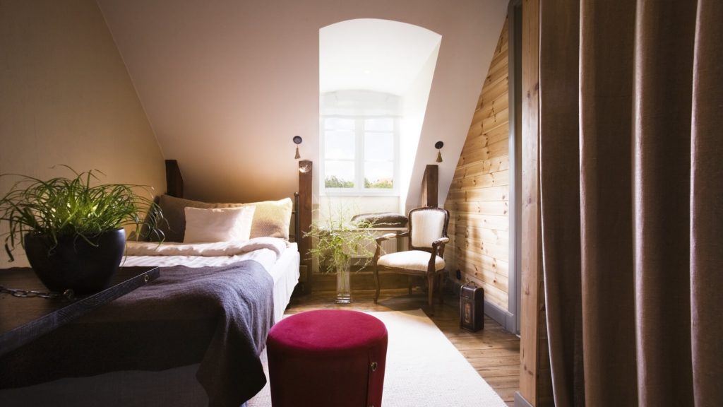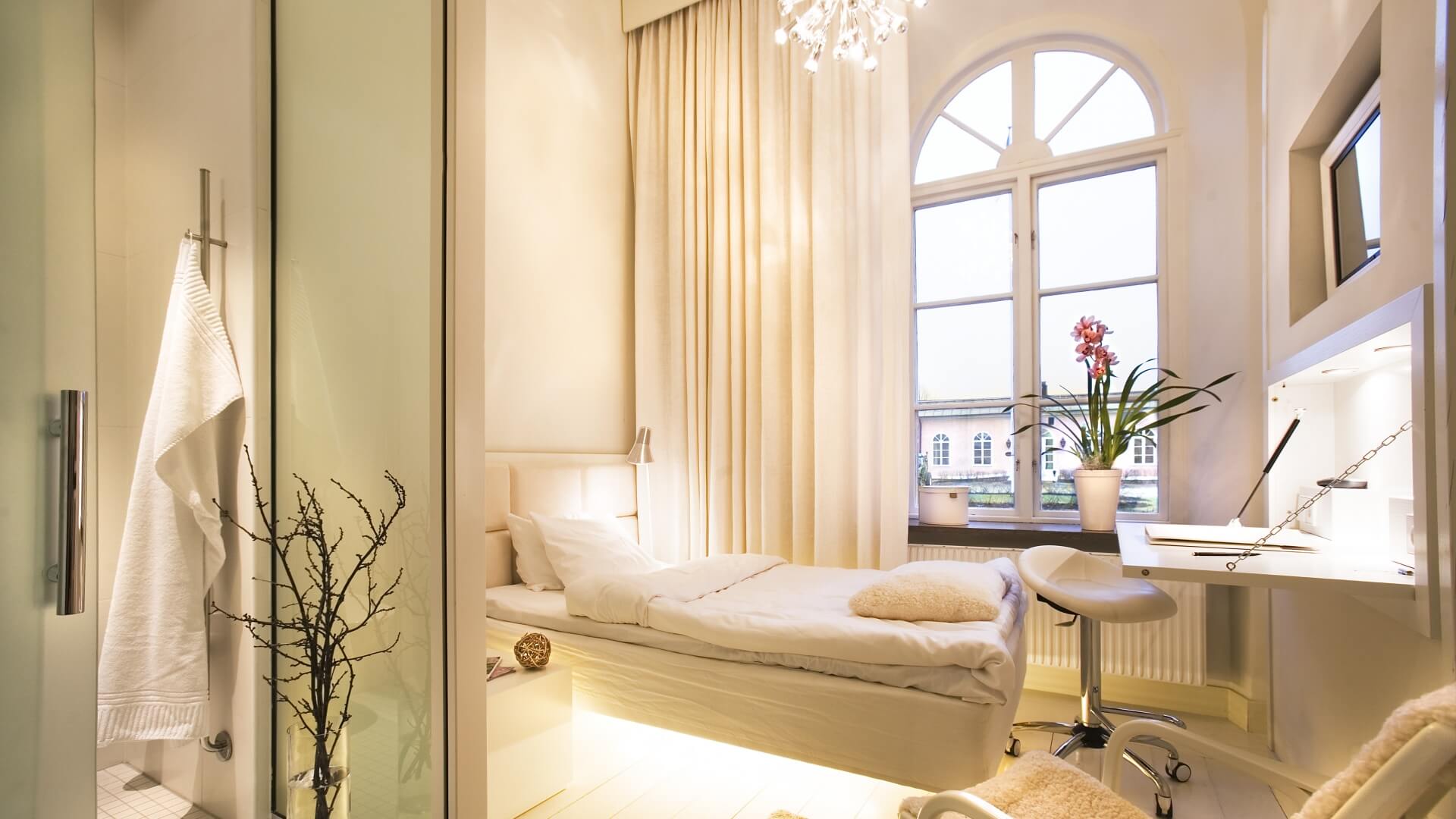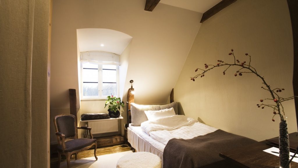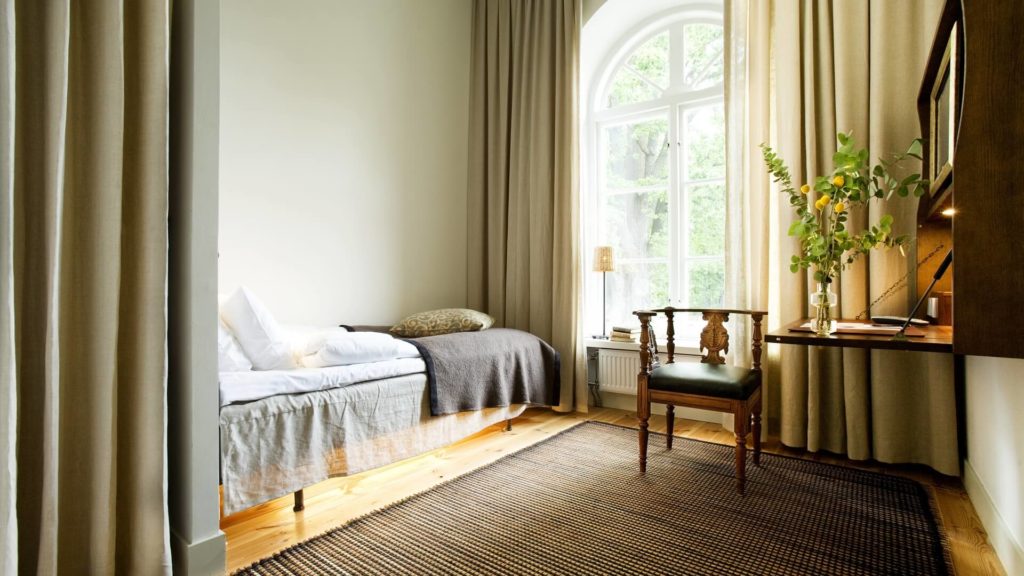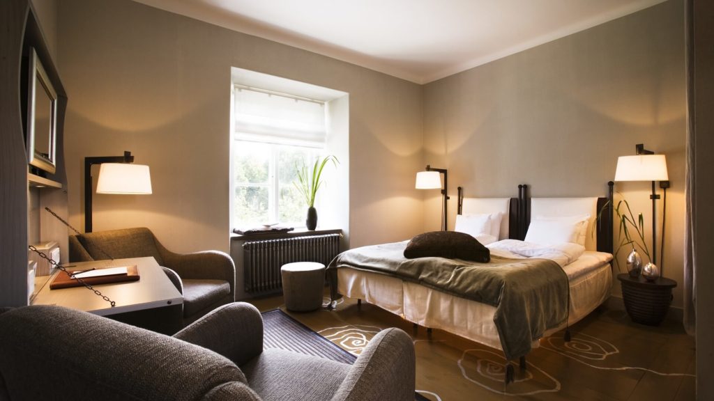 Alla våra 54 hotellrum är individuellt inredda. På Stockholms närmaste slott kan du välja och vraka mellan romantiska himmelssängar, badkar i alla dess former, sviter du aldrig kunnat drömma om och färgsprakande inredning. Vi har hög kvalité i alla våra materialval för att du ska få en upplevelse av hög klass.