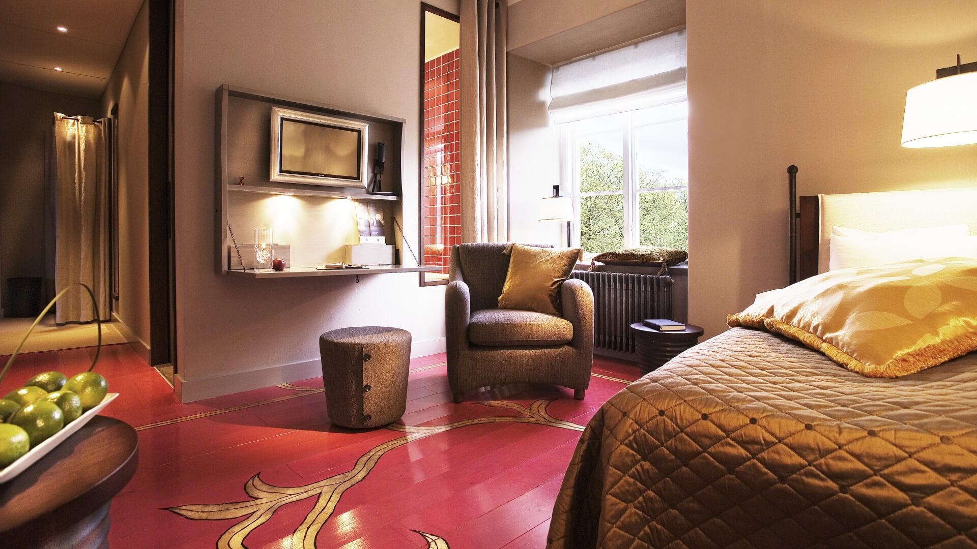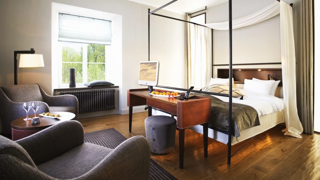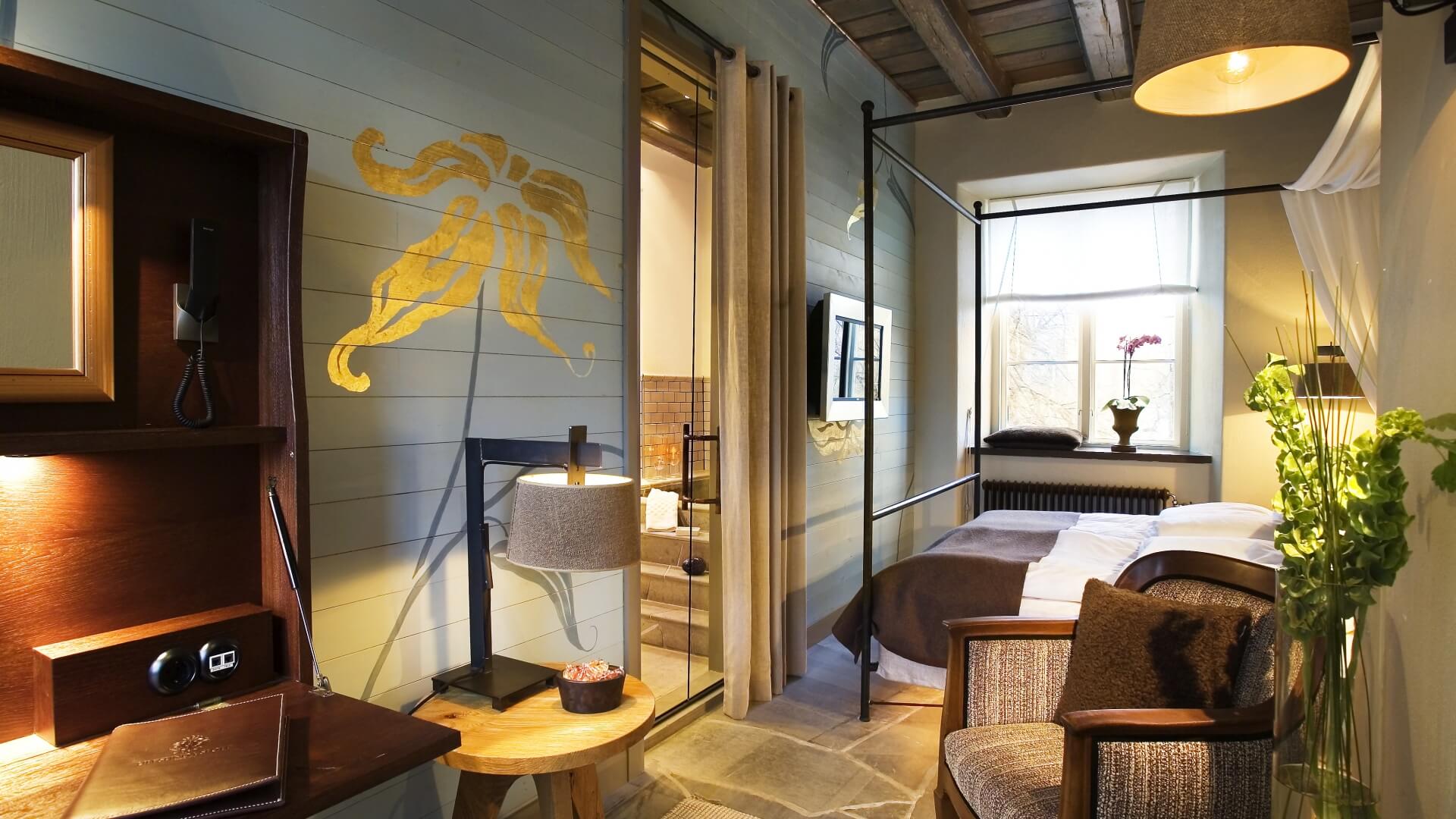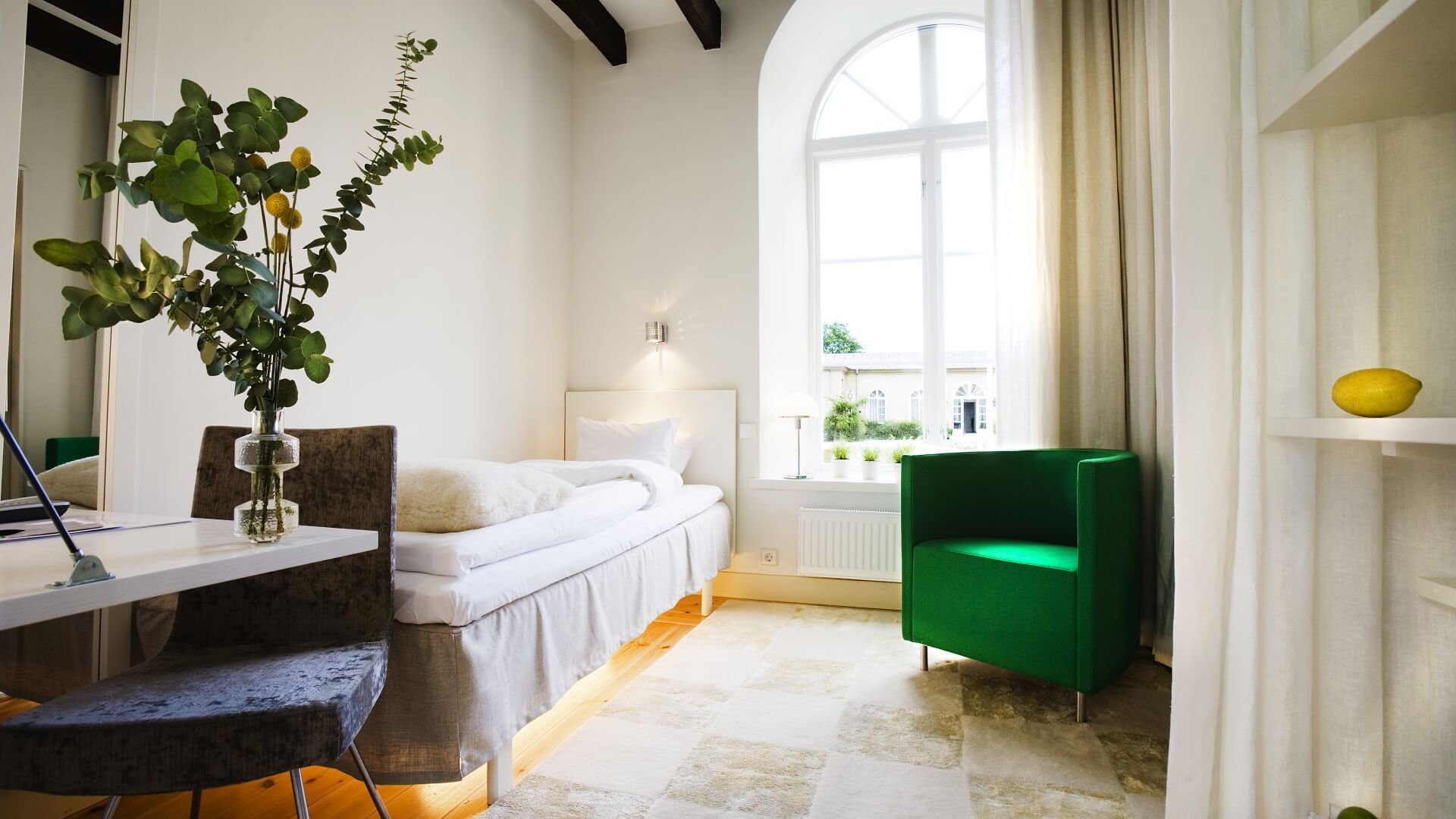 Alla våra 54 hotellrum är individuellt inredda. På Stockholms närmaste slott kan du välja och vraka mellan romantiska himmelssängar, badkar i alla dess former, sviter du aldrig kunnat drömma om och färgsprakande inredning. Vi har hög kvalité i alla våra materialval för att du ska få en upplevelse av hög klass.