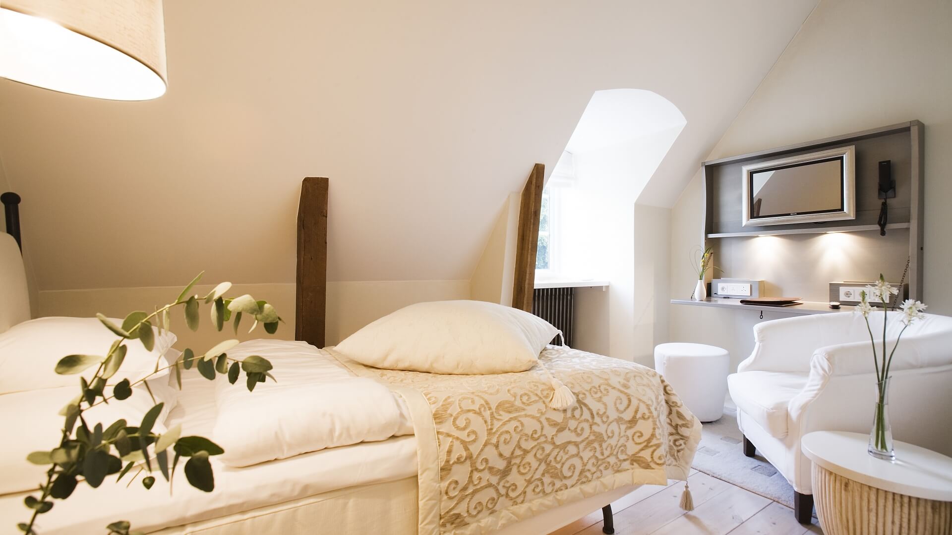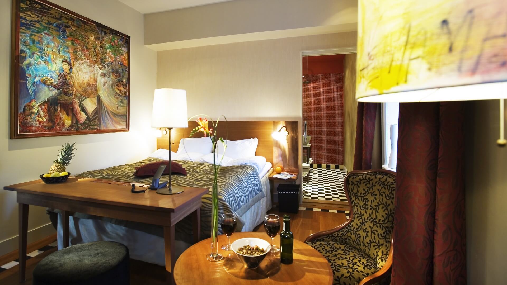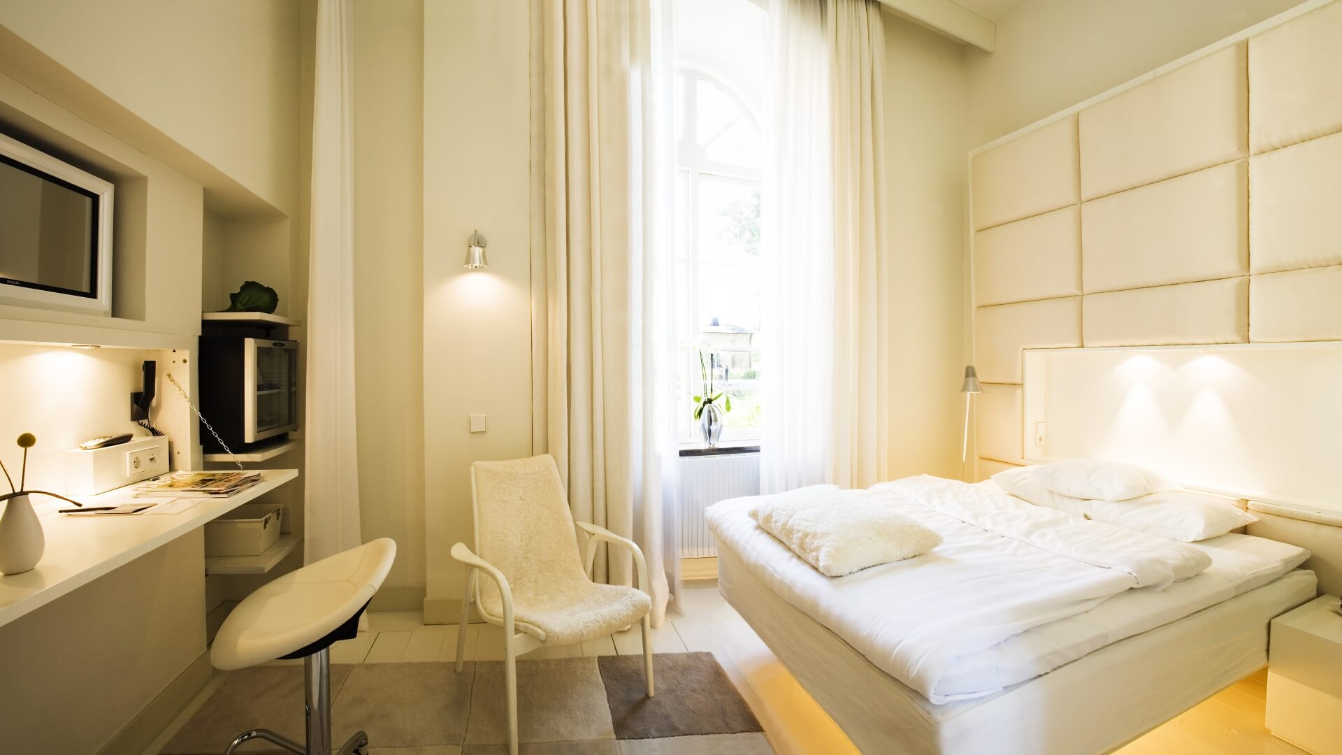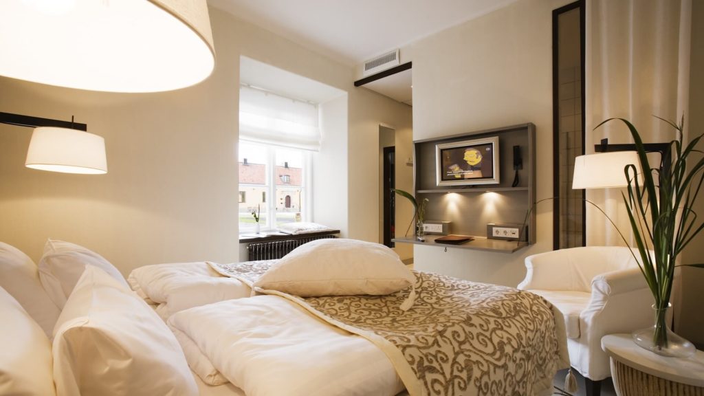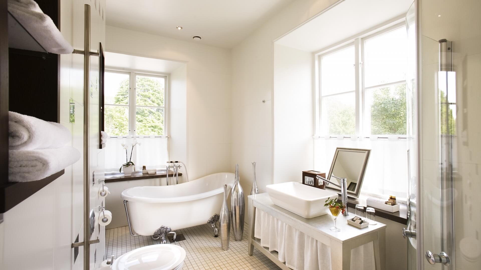 Alla våra 54 hotellrum är individuellt inredda. På Stockholms närmaste slott kan du välja och vraka mellan romantiska himmelssängar, badkar i alla dess former, sviter du aldrig kunnat drömma om och färgsprakande inredning. Vi har hög kvalité i alla våra materialval för att du ska få en upplevelse av hög klass.