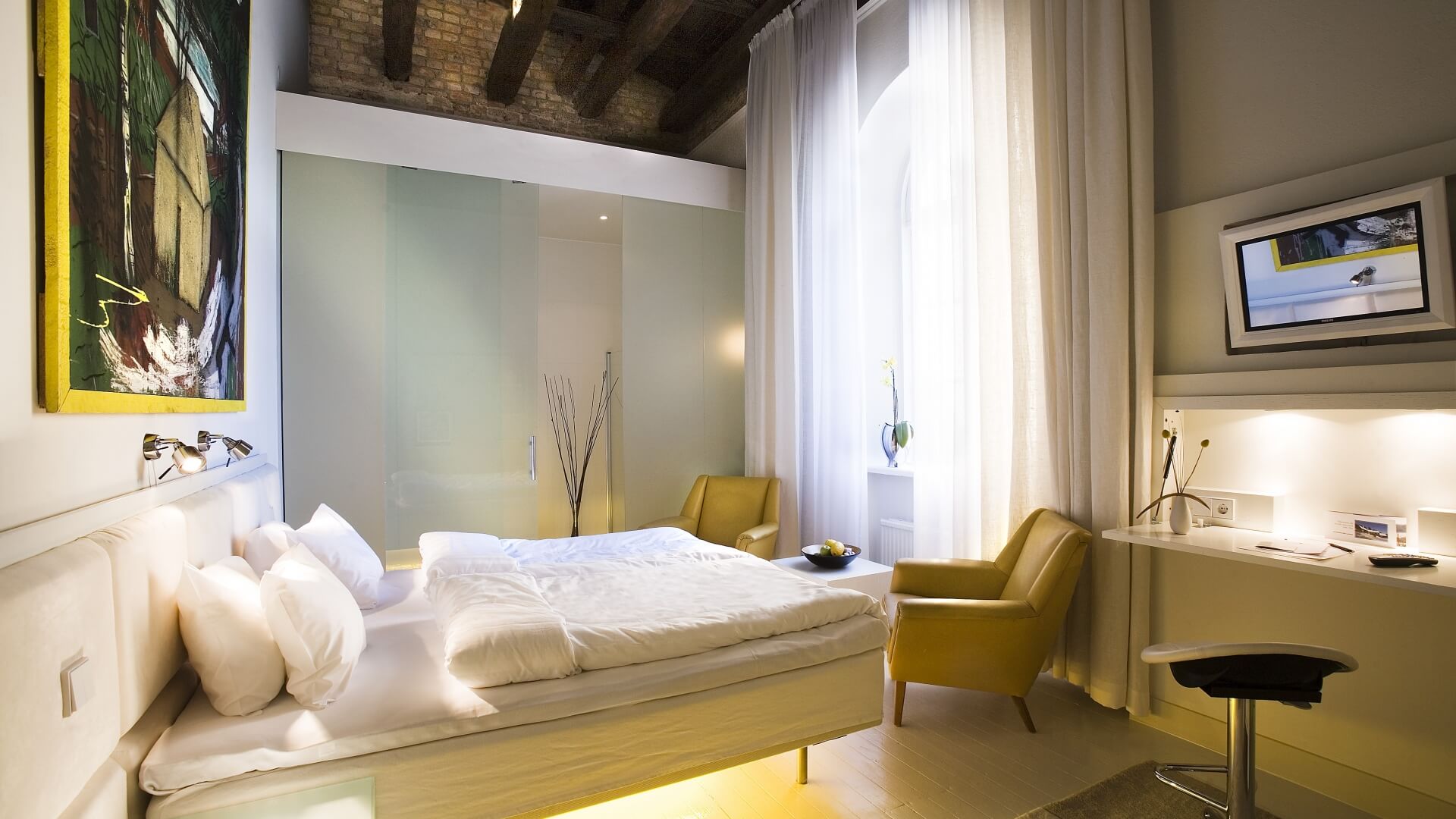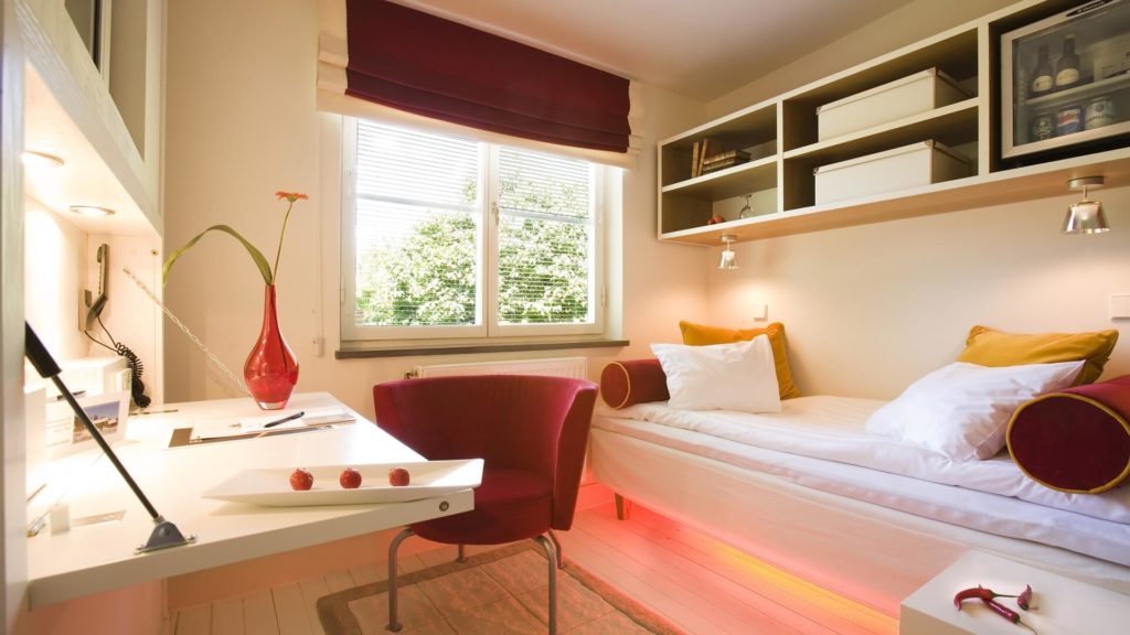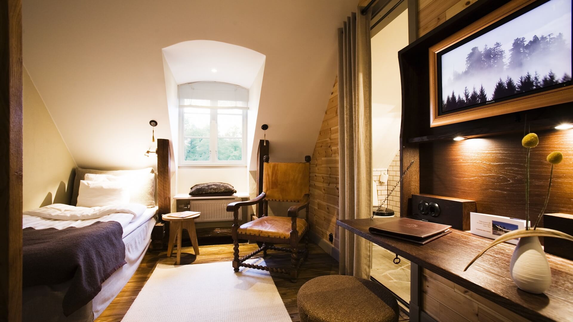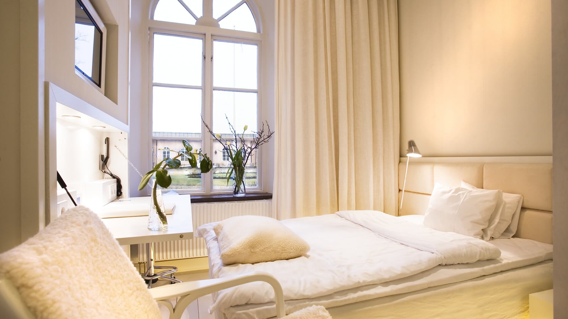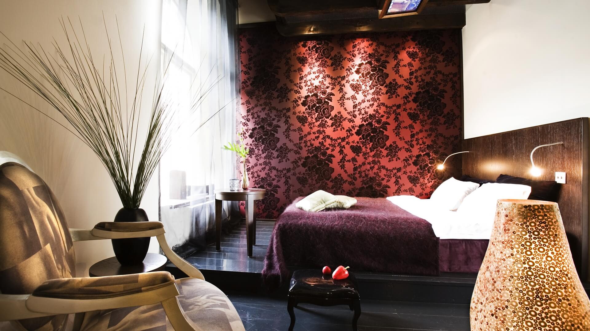 Alla våra 54 hotellrum är individuellt inredda. På Stockholms närmaste slott kan du välja och vraka mellan romantiska himmelssängar, badkar i alla dess former, sviter du aldrig kunnat drömma om och färgsprakande inredning. Vi har hög kvalité i alla våra materialval för att du ska få en upplevelse av hög klass.